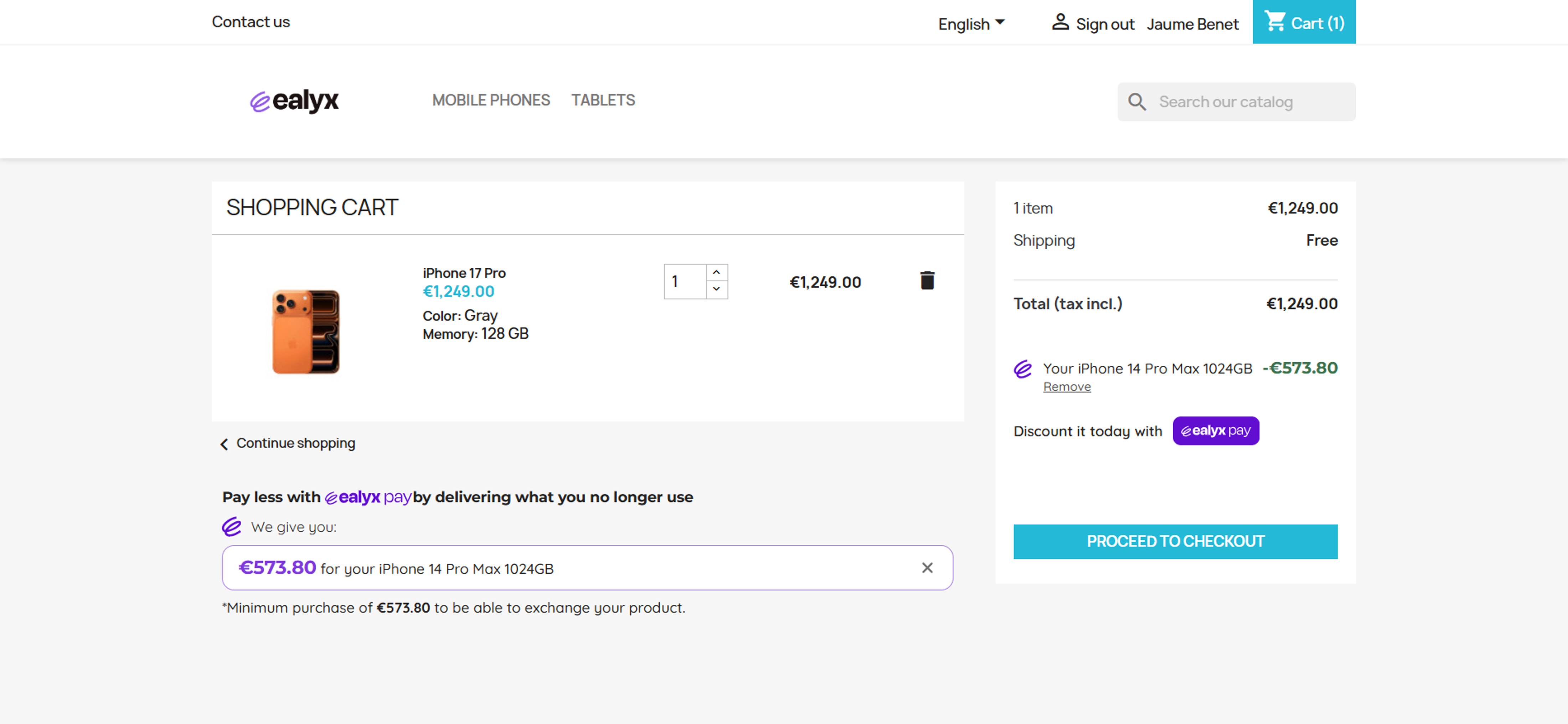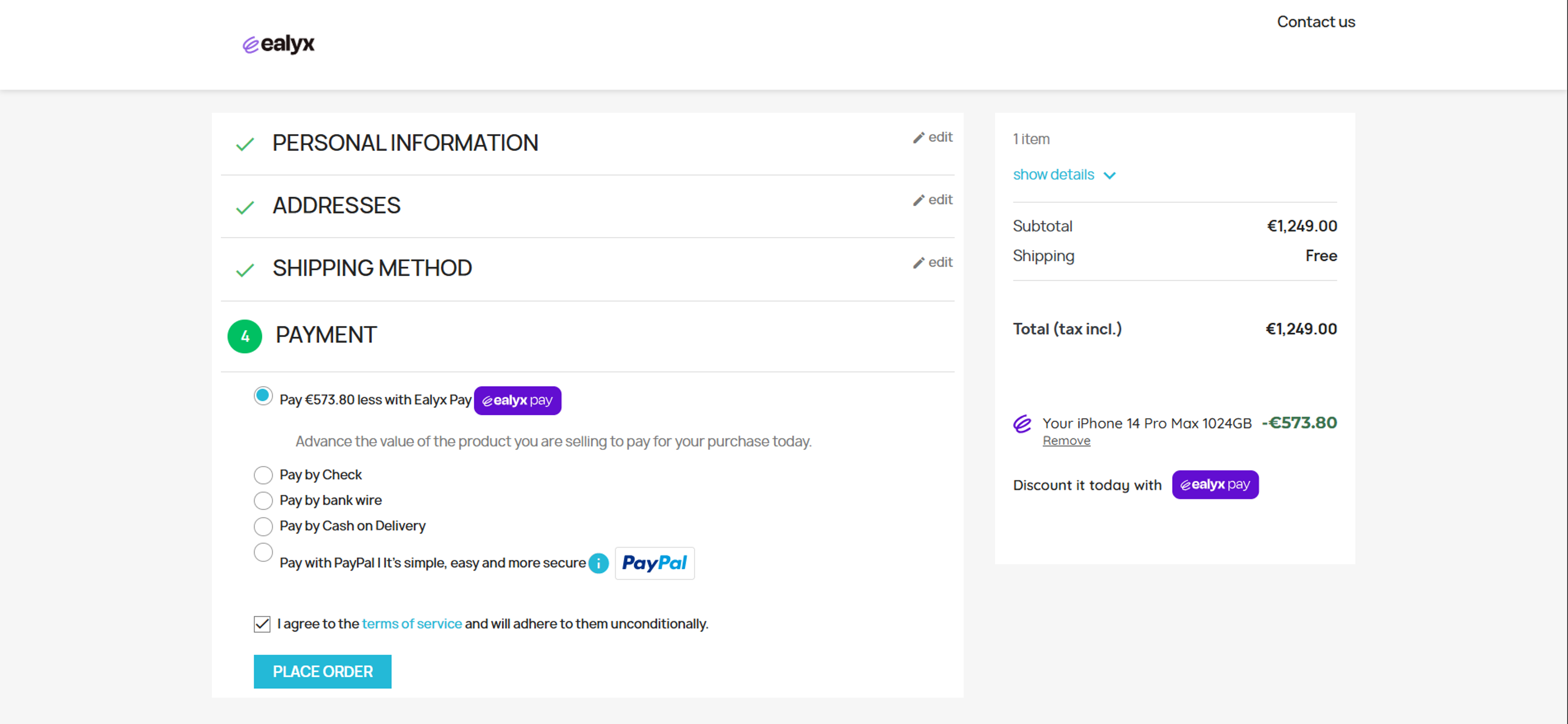 Make sure that Ealyx Pay is present at checkout also as a payment method and is displayed next to the other payment methods.