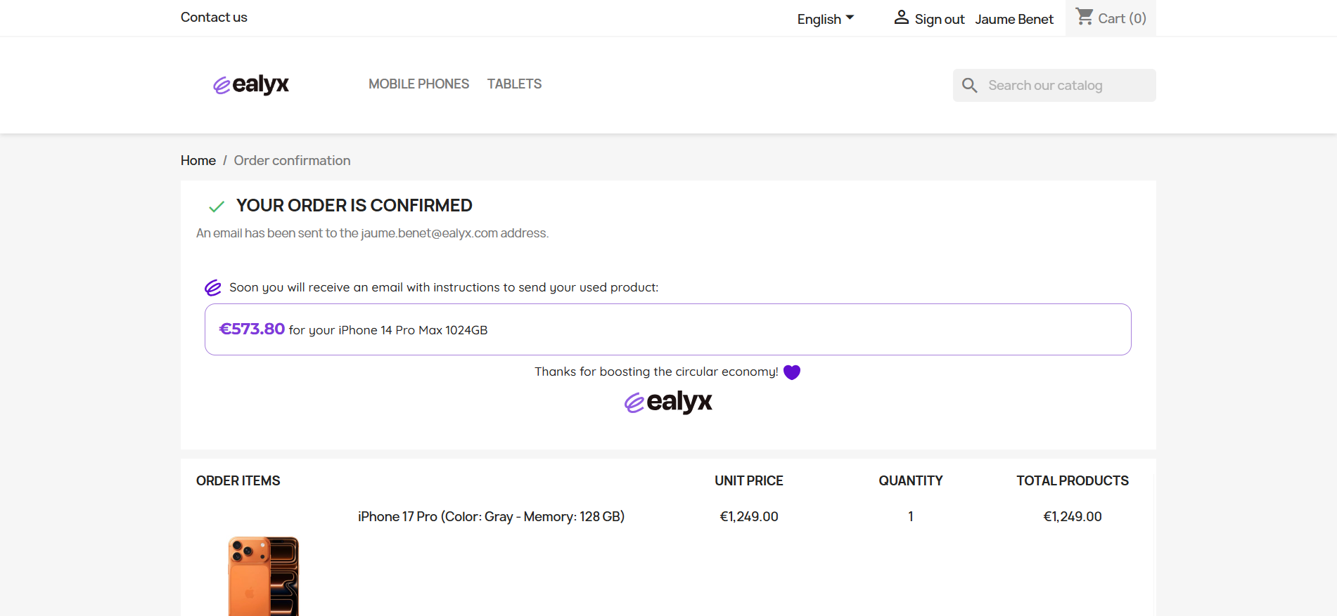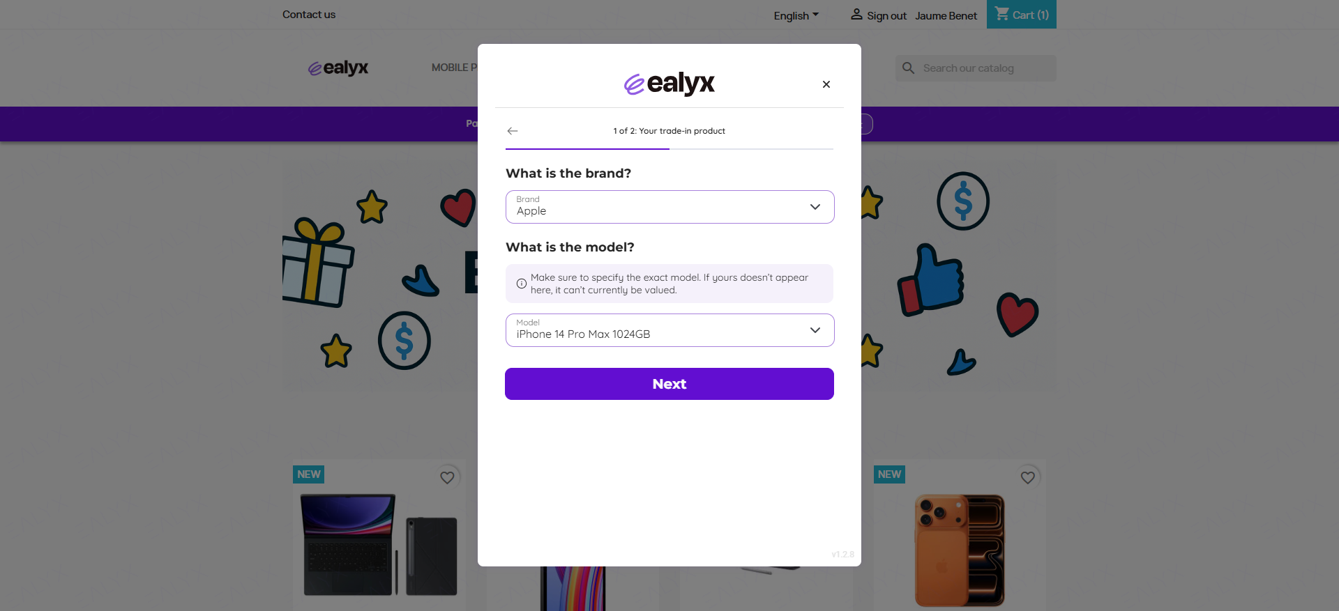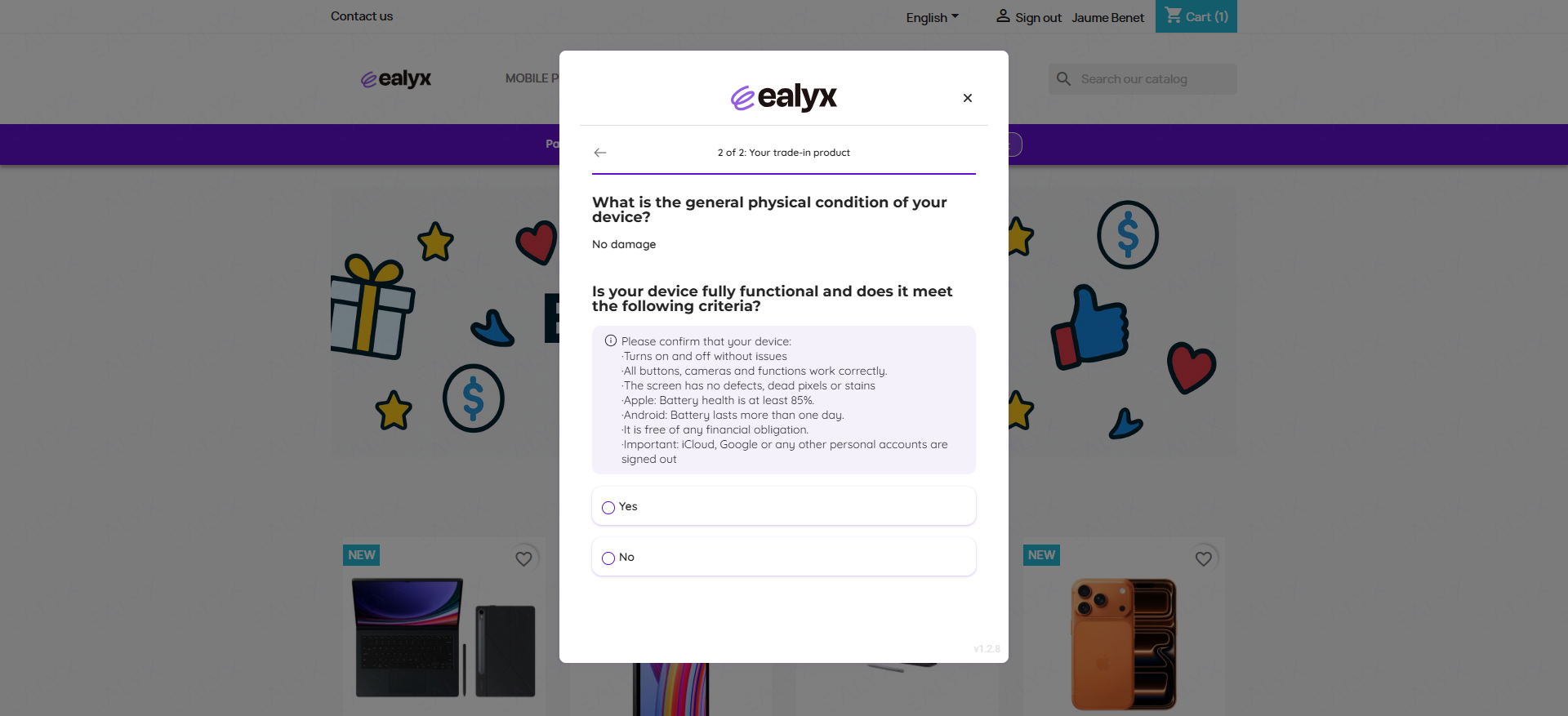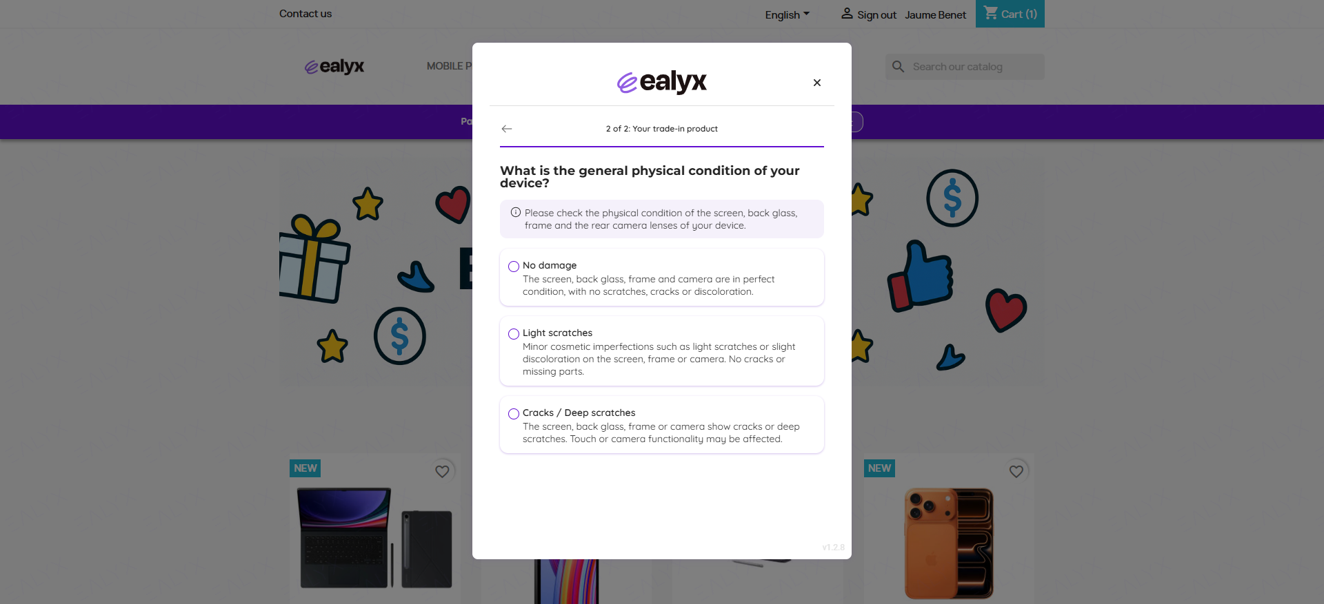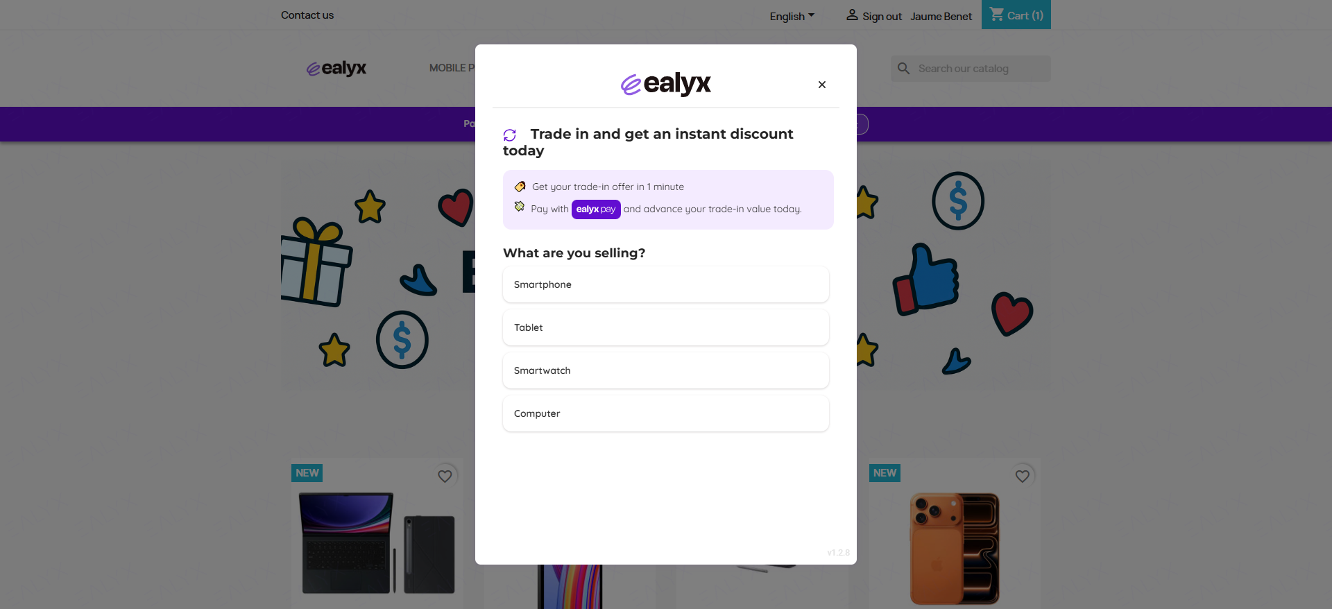 Throughout the purchasing journey, consumers with a previous valuation accepted can visualize their offer at four key steps (Home page, Product page, Cart page and Checkout page) and ensuring that the trade-in value remains traceable once a valuation is completed.