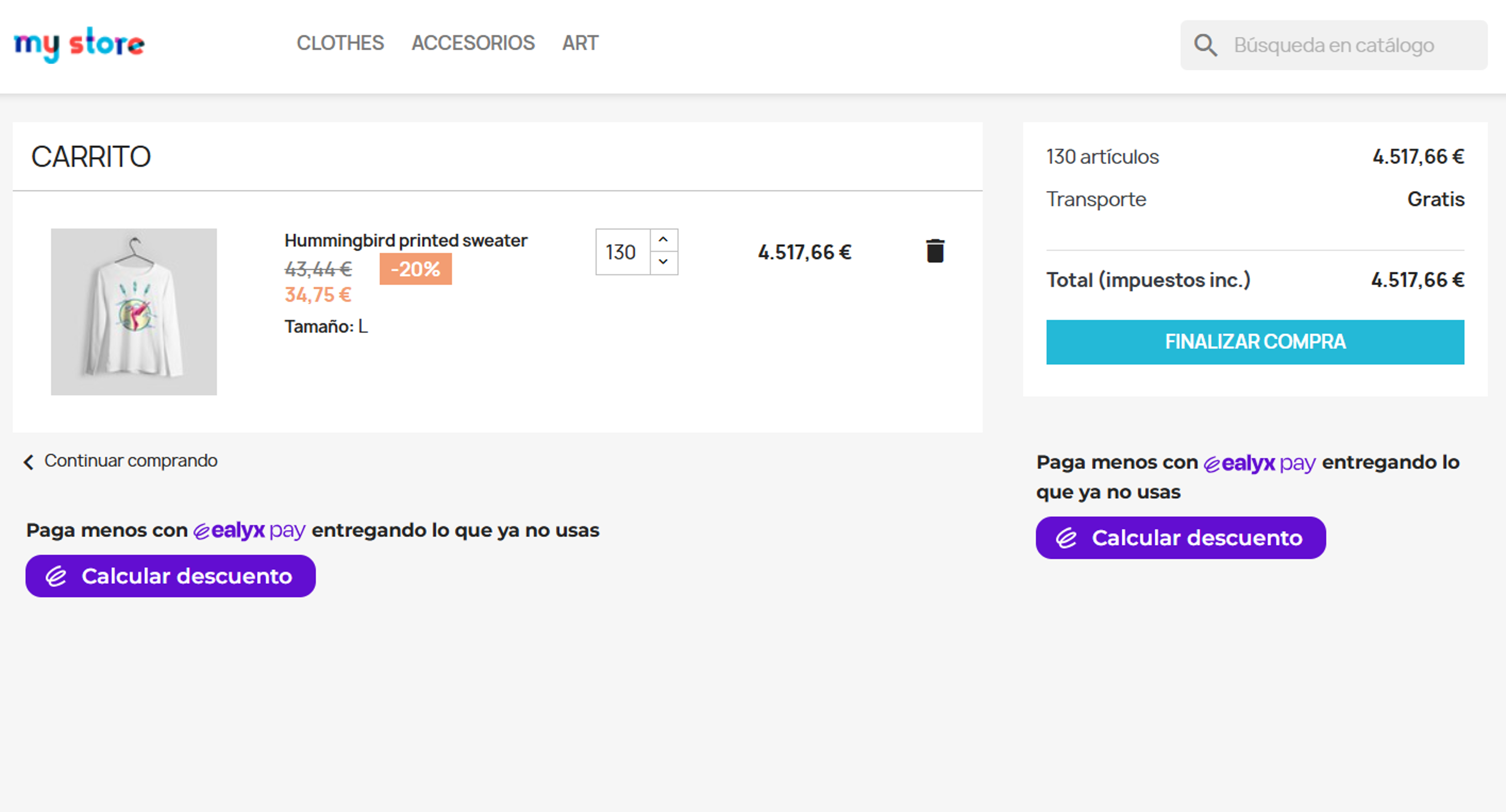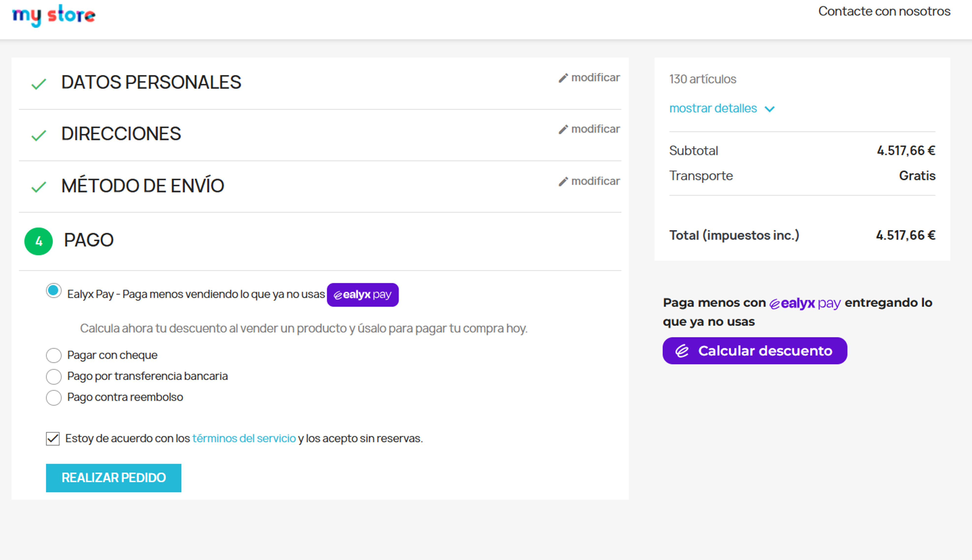Make sure that Ealyx Pay is present at checkout also as a payment method and is displayed next to the other payment methods.