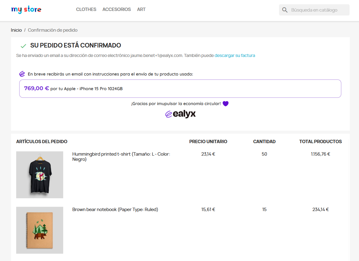 Throughout the purchasing journey, consumers with a previous valuation accepted can visualize their offer at four key steps (Home page, Product page, Cart page and Checkout page) and ensuring that the trade-in value remains traceable once a valuation is completed.