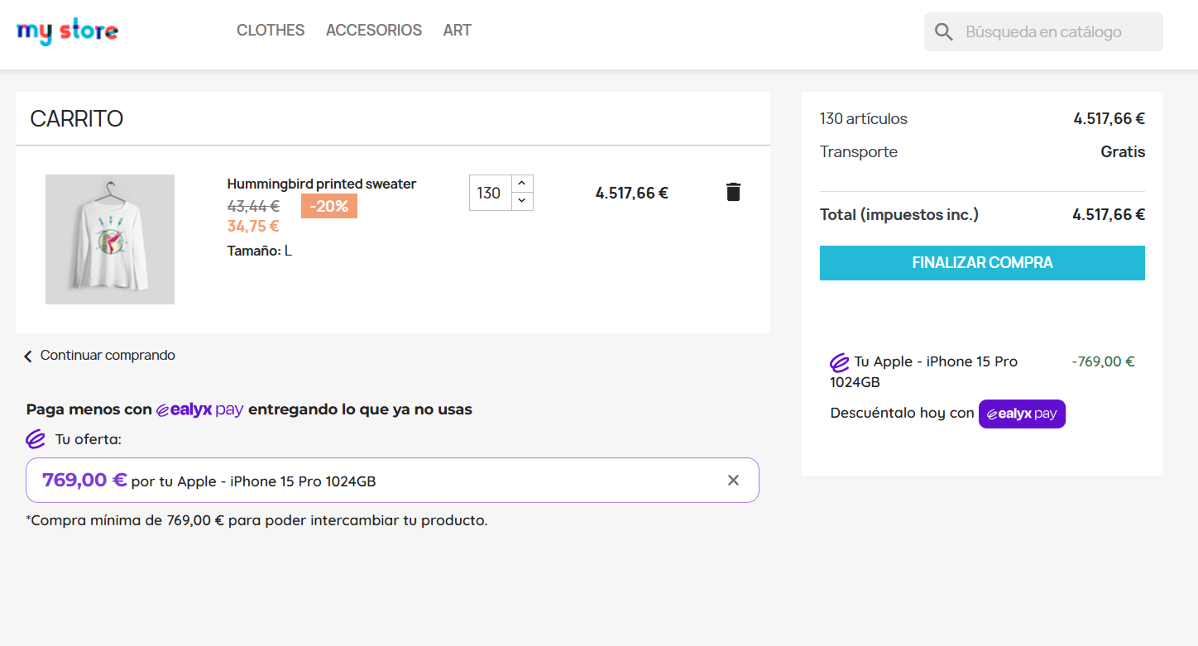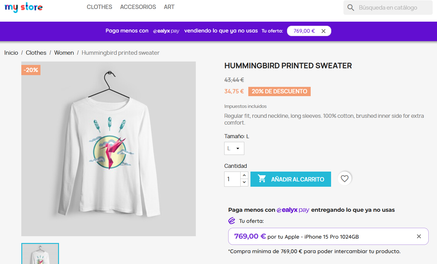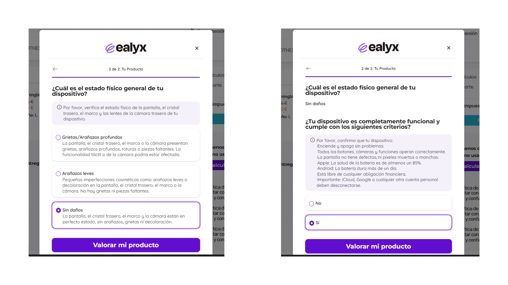 Throughout the purchasing journey, consumers with a previous valuation accepted can visualize their offer at four key steps (Home page, Product page, Cart page and Checkout page) and ensuring that the trade-in value remains traceable once a valuation is completed.