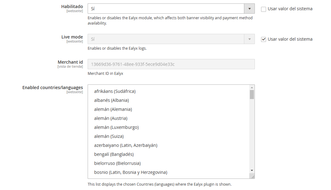 | Enabled Countries/Languages | Defines where the plugin appears |