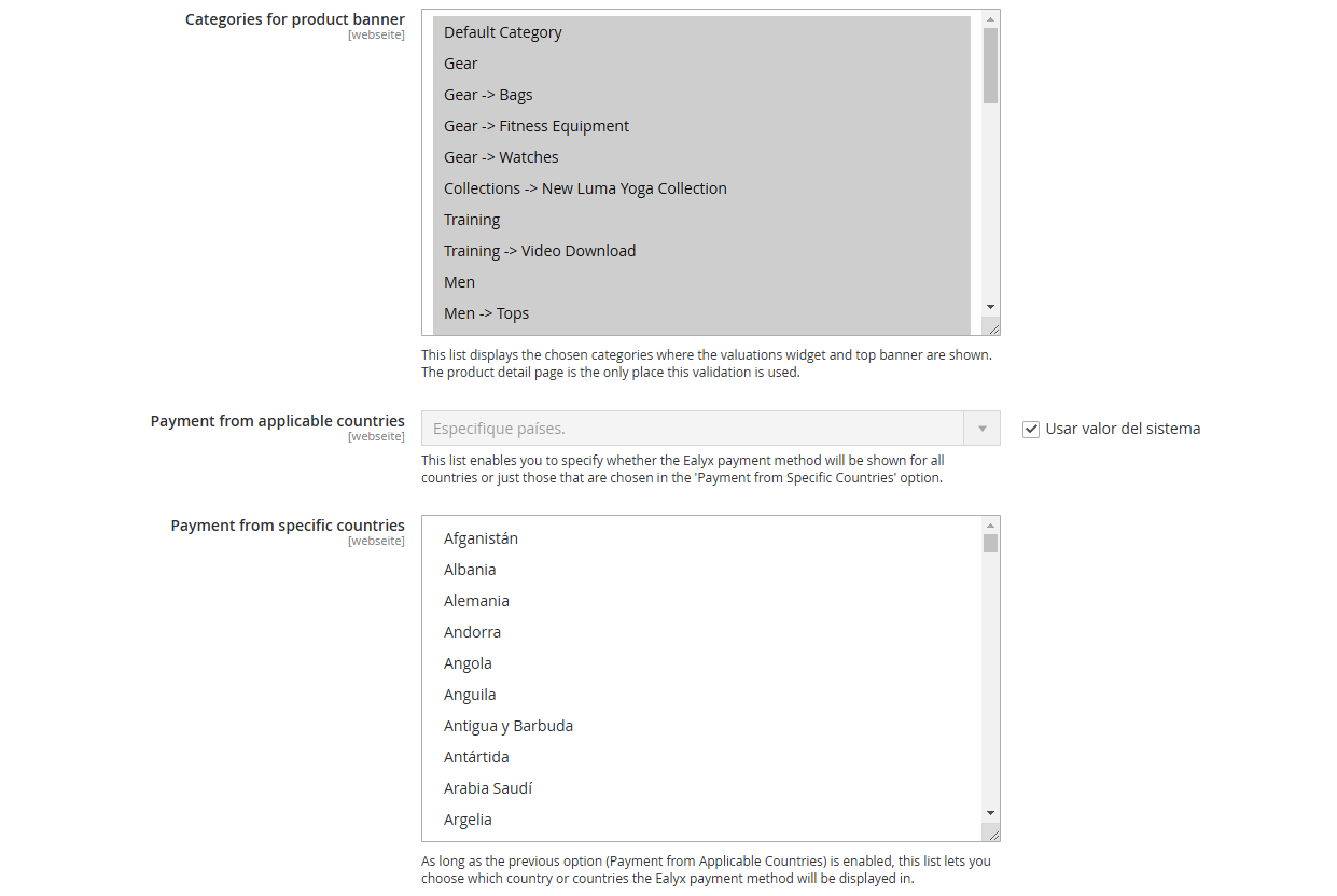 | Categories for Product Banner | Specifies which categories show Ealyx banners |