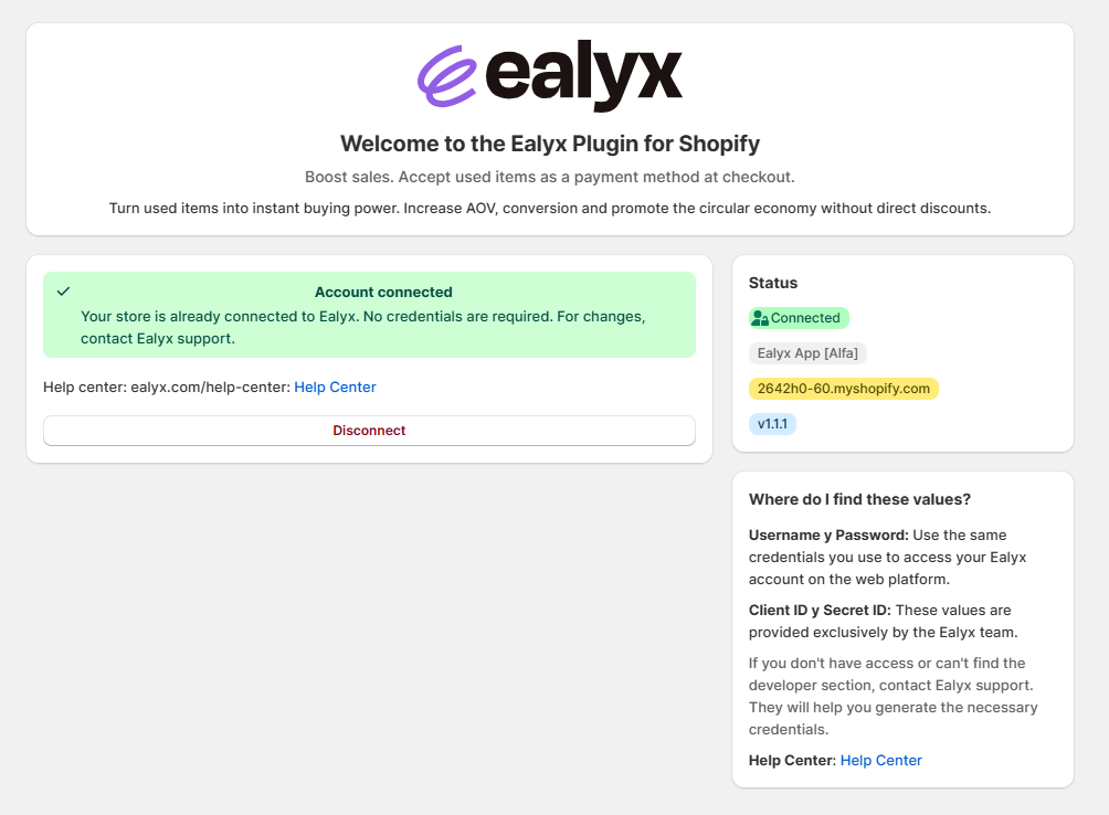 - In your Shopify admin panel, go to Apps → Ealyx.