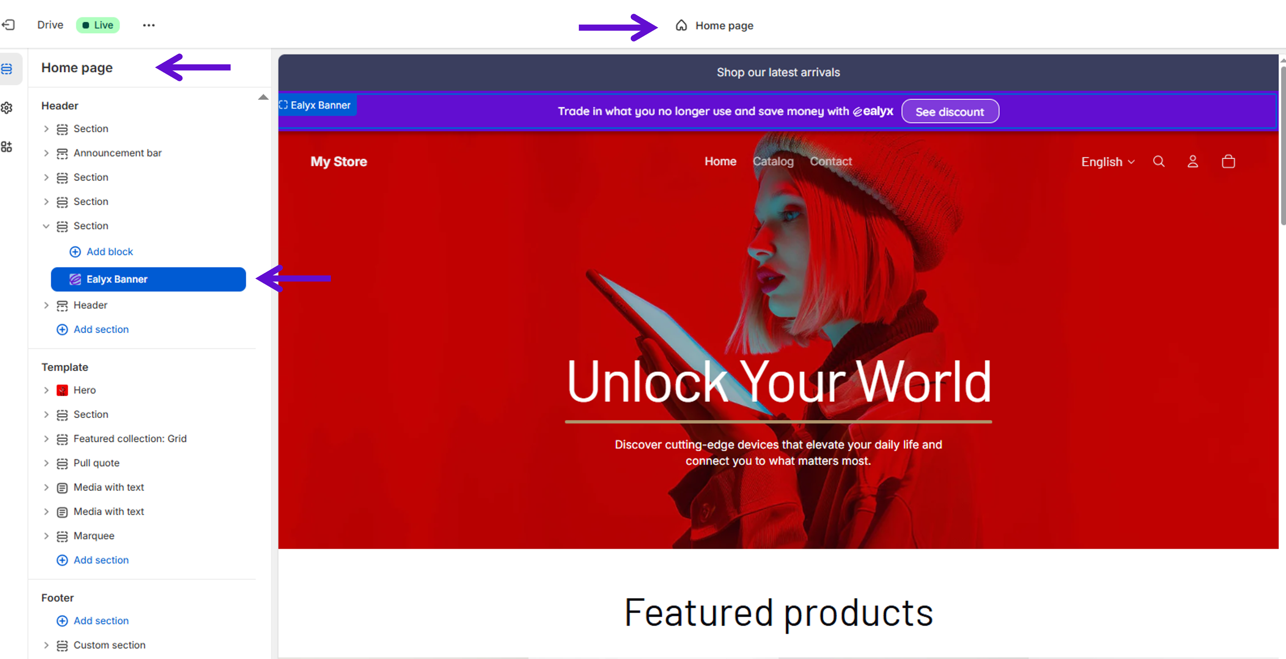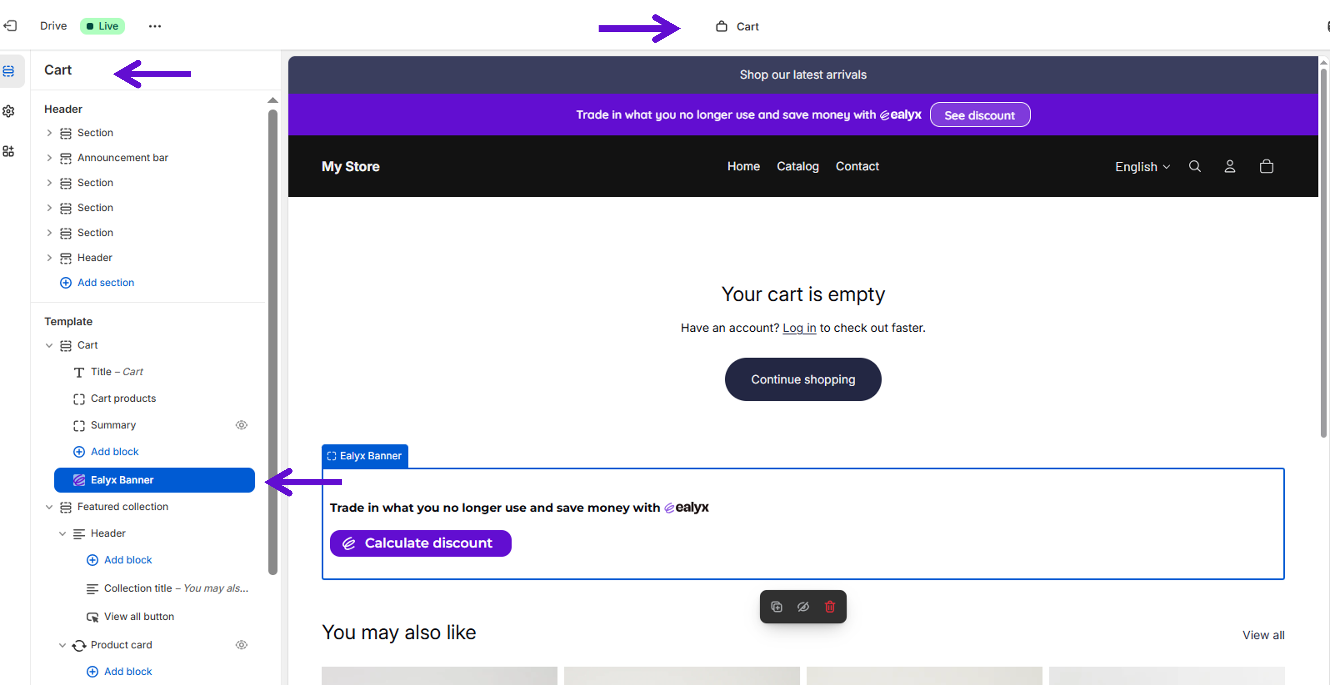 💡 It is recommended to repeat the same process on the Collections page, Product page, and Cart page.
