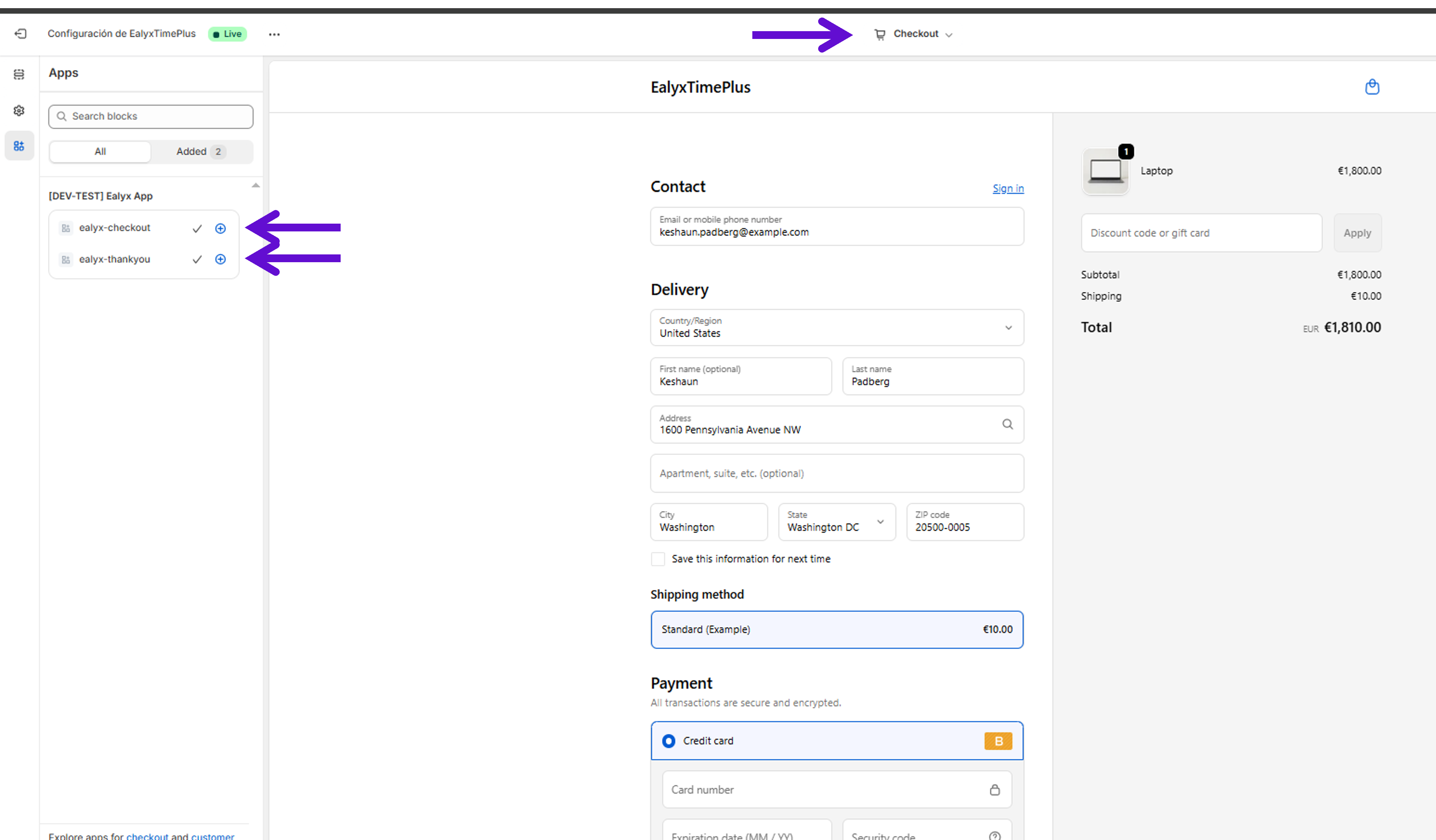 - Select ealyx-checkout → Add to → Checkout
