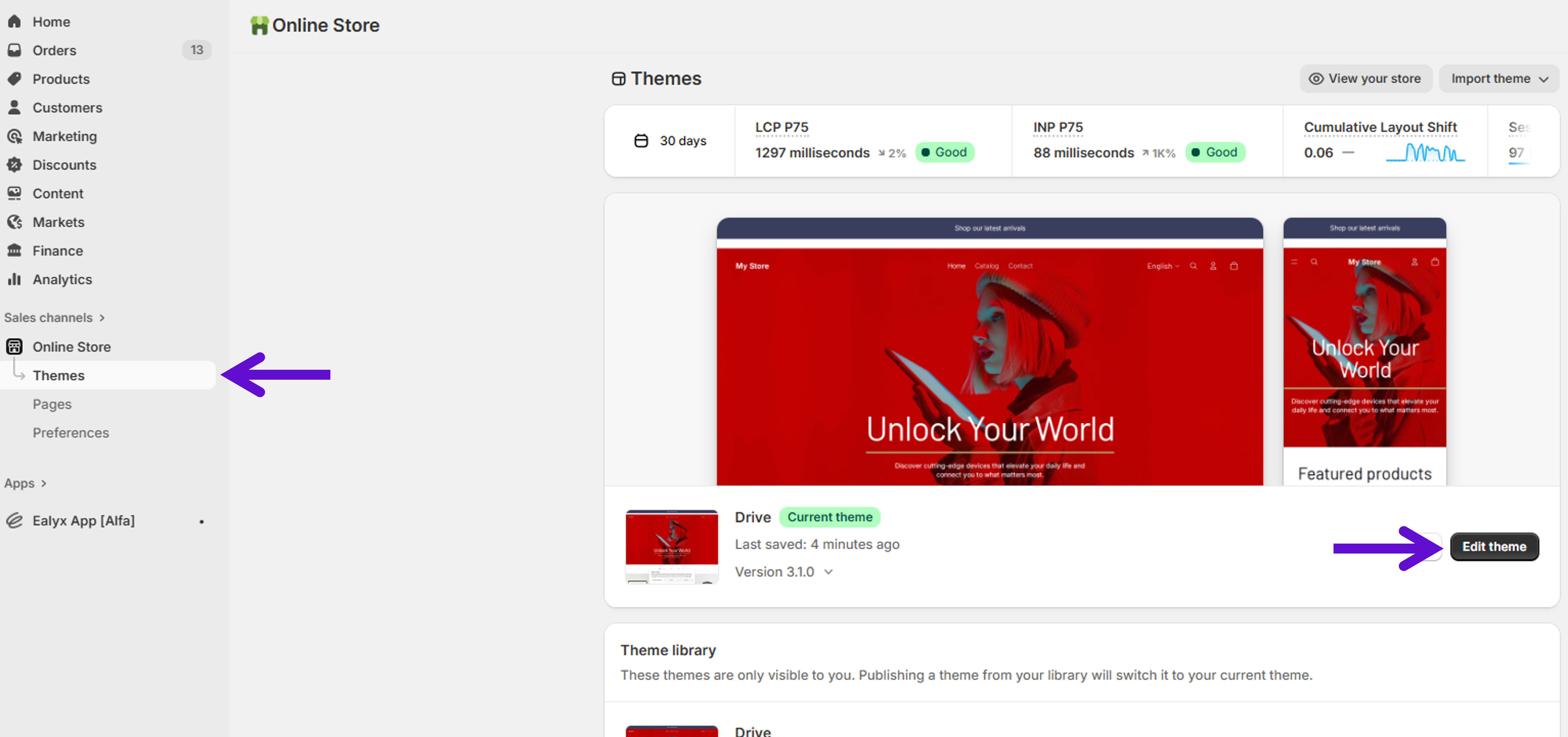 - Click Edit theme on your active theme.