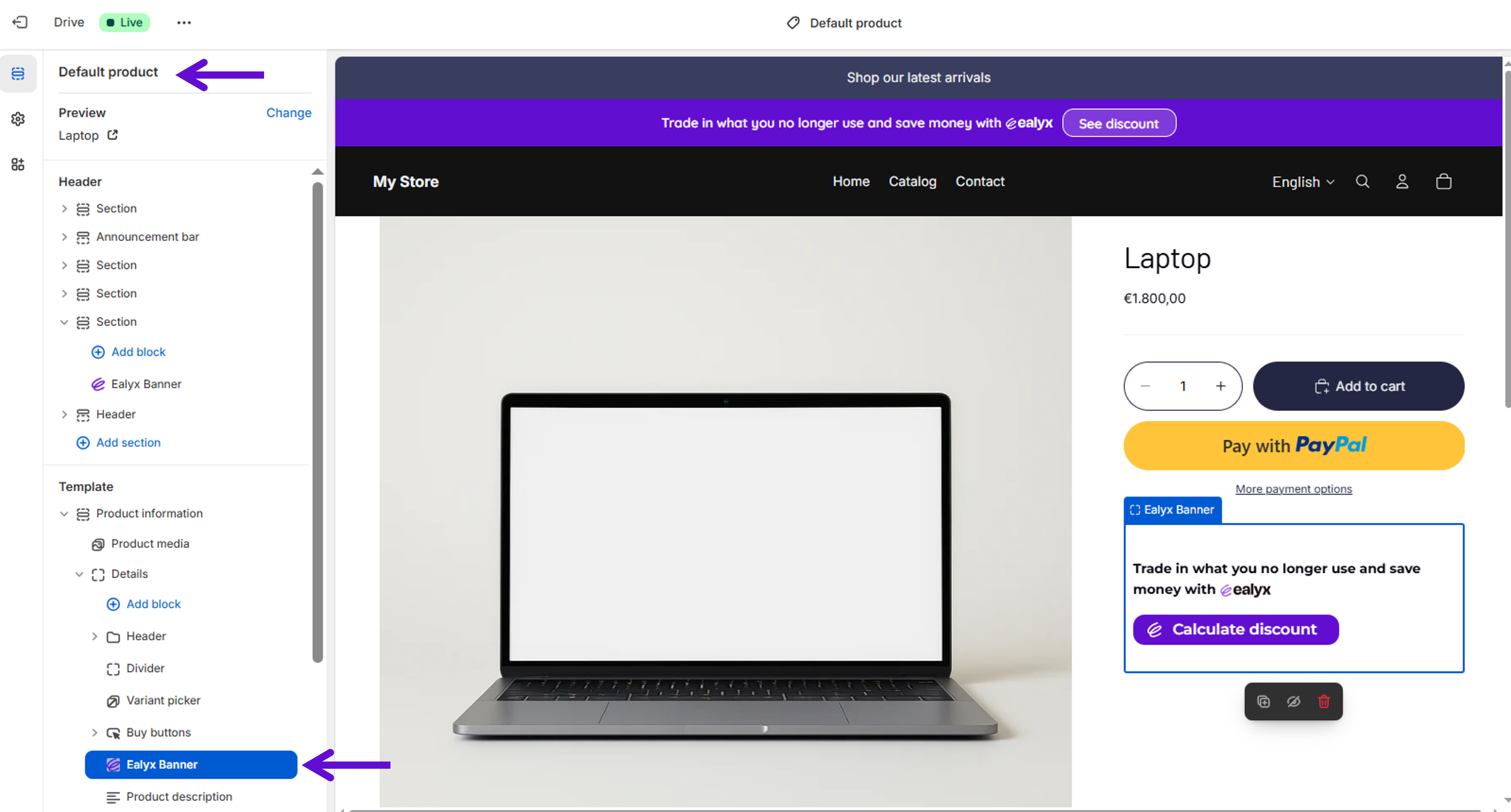 All Ealyx widgets are inserted through the Shopify Theme Editor — no code snippets needed.